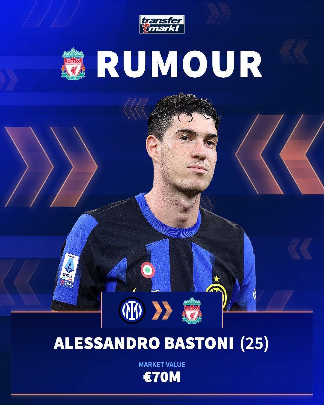 国米方面并不想出售巴斯托尼,但也要视情况而定,如果利物浦的出价足够高,国米可能会考虑出售。如果求购巴斯托尼失败,利物浦可能会考虑多特的施洛特贝克。