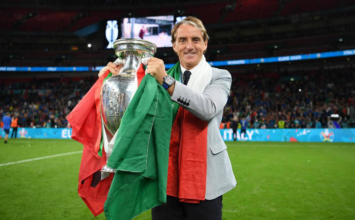 在首次执教国际米兰时,他带队赢得了17年来的首个意甲冠军,并且连续夺得三连冠。在执教曼城期间,他带领球队夺得英格兰顶级联赛冠军,这也是球队44年来的首个冠军。同时,他执教意大利国家队时,在1998年世界杯预选赛出局后,带领球队逆袭并夺得2020年欧洲杯冠军。