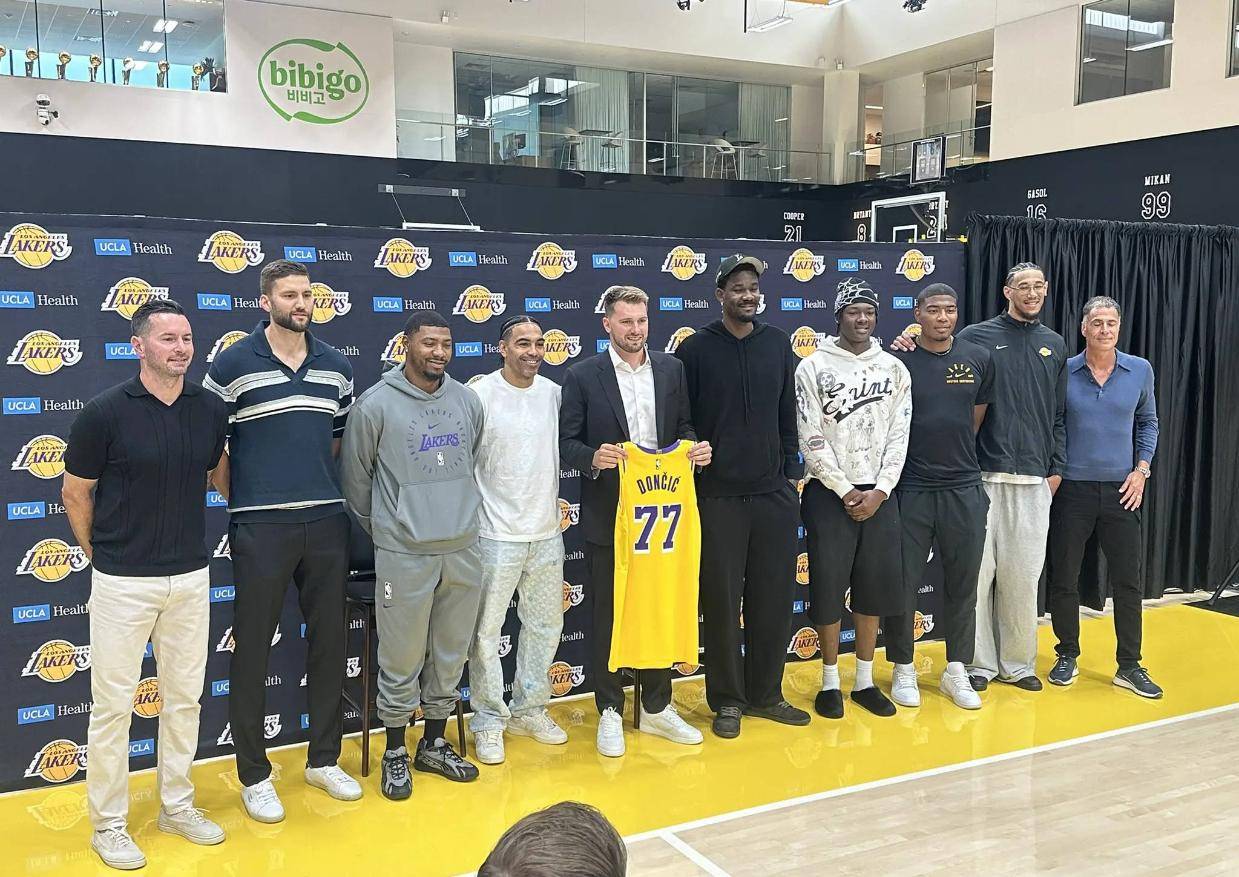 值得一提的是,在东契奇签约新闻发布会的现场,多位队友到场为其祝贺。比如斯玛特、艾顿、文森特、八村塁、可乐贝尔等,但没见到勒布朗-詹姆斯的身影。